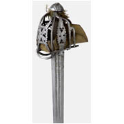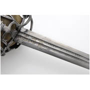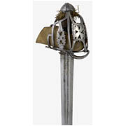 Basket-hilted sword, Whitelaw Class C. Blade signed 'Herman Keisserr' and erroneously dated '1570'. Coat of arms engraved onto the forte, said to be that of James Graham, first Marquis of Montrose. Knuckle bow bears the initials 'IS' (John Simpson of Glasgow). Wooden grip. First quarter of the 18th century.