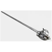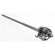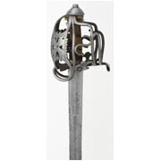 In many ways this sword is representative of the classic Scottish basket-hilted sword of the early 18th century. The unmarked basket is of a standard type made in large numbers by Stirling swordsmiths. It is composed of narrow, rounded bars of steel, with rectangular panels on either side of the font bar – these panels are punched with round holes and arrowhead-shaped piercings, and the edges of the panels have been decorated with simple filework, a form of ornament that is also typical.