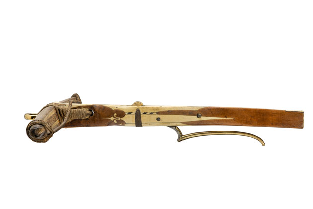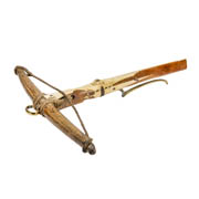 Crossbow of poplar wood, of composite construction, the tiller of poplar wood inlaid with buck-horn. Made in Germany, mid 15th century.