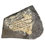 This specimen is the holotype of the species, Dithyrocaris testudinea. It was first described and figured by John Scouler in his paper ‘Account of some fossil Crustacea which occur in the coal formation’ in Records of General Science for 1835. It has been figured in several publications since including the Phyllocarida section of the Treatise for Invertebrate Paleontology, Part R, Arthropoda - ID Number