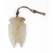 Jade cicada amulet. White jade with russet spots.