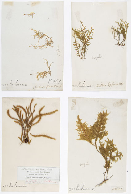 This moss is part of the museum's overseas bryophyte collections. It was originally part of the University of Strathclyde's herbarium and belonged to the large collection made by John Scouler. He made one of the earliest voyages of discovery to the western seaboard of North America (arriving there in 1825). The more famous pioneer David Douglas (of Douglas Fir fame) accompanied him. It is thought that this specimen was collected by the latter when he visited Hawaii, where he died in 1834.