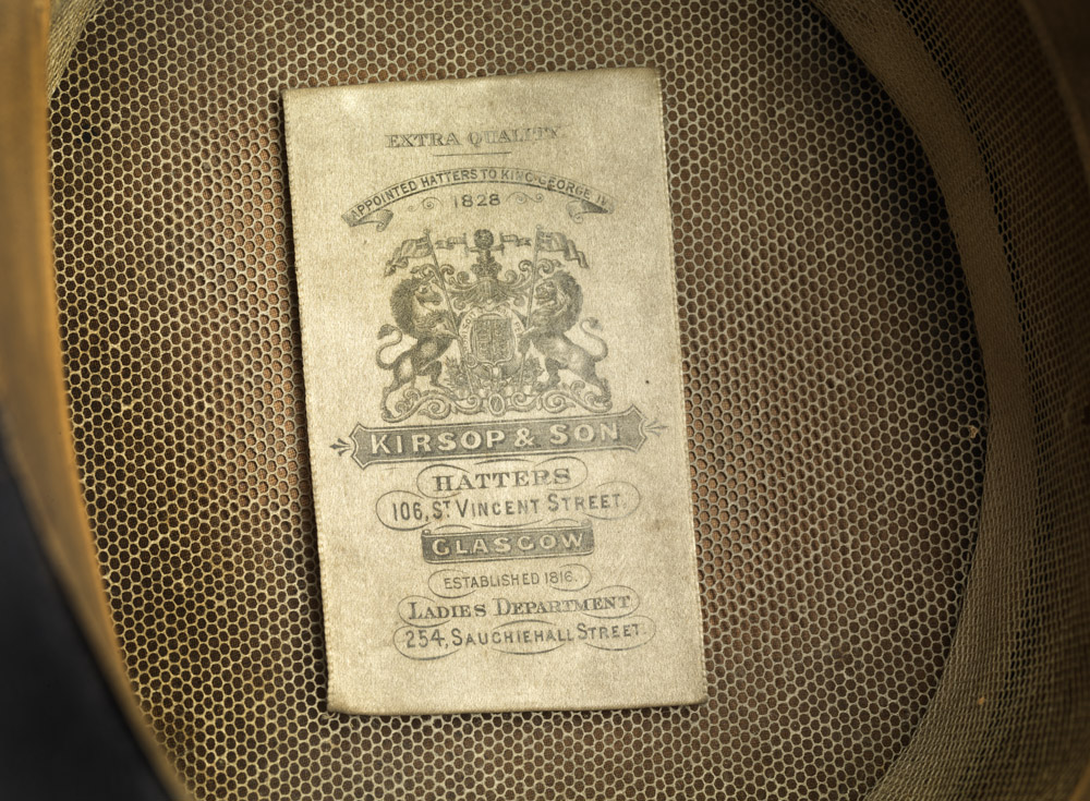 John Kirsop's son, Thomas, later joined the business with the firm becoming John Kirsop & Son in 1885, although their hats were often labelled just Kirsop & Son. A selection of their hats was exhibited in case 1,027 in the Glasgow International Exhibition 1888 and with their premises on Argyle described as 'very extensive. The sale shop and showroom is fitted up in a manner and style well suited to the high-class, character of the business, and contains a superb stock, representing the very best products of the modern hatter’s craft. On the floor above (which was formerly a picture gallery — the first in Glasgow), Messrs. Kirsop have laid out a fine spacious saloon of handsome appointment, wherein they make a magnificent display of ladies’ superior millinery, a department developed by them with very great success.' John Kirsop retired in the early 1890s and died in 1898, aged 76. His son, Thomas, took over full management of the company. In 1894 a new branch for gentleman's hats was opened at 106 St Vincent Street, Glasgow. The following year the premises at 98 Argyle Street were closed and a new ladies' and children's branch was opened at 254 Sauchiehall Street, expanding into 256 in 1898. In 1903 the ladies' and children's branch moved to 558 Sauchiehall Street. Thomas Kirsop died, aged 66, in 1917.