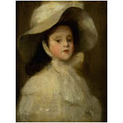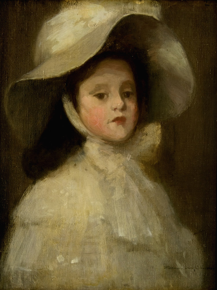 In 1902 Dean married Glasgow Boy Robert Macaulay Stevenson (1854–1952). His first wife Jean Shields of Irvine had died in childbirth several years earlier. Dean’s life changed dramatically as she became step-mother to his daughter Jean. This painting was possibly that exhibited as Miss Stevenson at the Royal Glasgow Institute of the Fine Arts in 1902 (no. 60). Painted in the year of Dean’s marriage to her father, this portrait perhaps suggests some initial ambivalence to this new family member. The influence of American artist James McNeill Whistler (1834–1903) can be seen in its concern for subtle colour harmonies and pictorial balance. In 1898 and 1901 Dean exhibited with the International Society of Sculptors, Painters and Gravers of which Whistler was President. She also exhibited at the Royal Glasgow Institute of the Fine Arts from 1894 and at the Paris Salon. In 1905 she painted a portrait of Scottish writer Neil Munro which was acquired by the Scottish National Portrait Gallery, the first painting purchased by them from a living artist. She was a member of the Glasgow Society of Lady Artists where she was convenor of the decoration committee in 1908 to supervise alterations to the headquarters at 5 Blythswood Square but resigned when Charles Rennie Mackintosh was not given the commission.