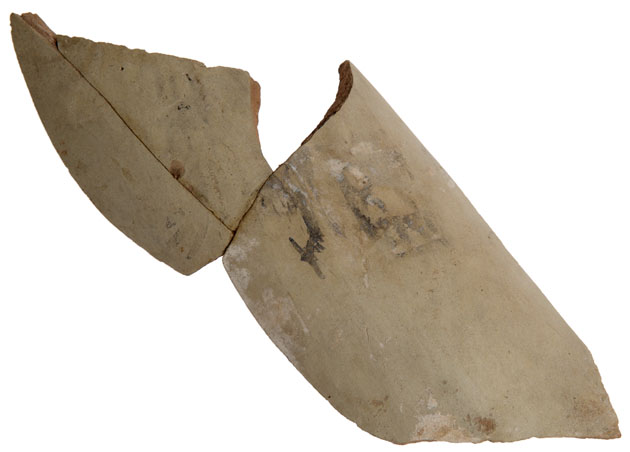 This piece of a broken cylindrical pot consists of three sherds that have been stuck together in modern times. It has hieroglyphs painted on it that record the name of a king Ka. Though somewhat smudged and faint, they can be read as 'king Ip, the Horus Ka'. The king’s Horus name is enclosed in a partly striped rectangular frame known as a serekh, which imitates the façade of a palace of the time. Kings were given the title, 'the Horus', because they identified with and were protected by the falcon god Horus. Ka probably ruled about 3150 BC, immediately before Menes/Narmer, the first king of the 1st Dynasty.