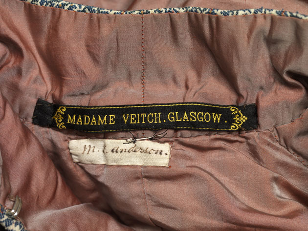 Madame Veitch was established by Harriet and her husband, Robert, Veitch in 1878, possibly in Carlisle, and was first listed in the Post Office Directory for Glasgow in 1882 as a milliner and mantle maker at 257 Sauchiehall Street, advertising for workers in the Glasgow Herald, including one on 18 October 1882 for mantle makers and another for a 'good practical milliner […] able to assist in sales' on 14 February 1884. From 1885 the Post Office Directory listed the business as either a 'modiste' or 'costumier'. An ad in the Glasgow Herald on 10 September 1889 invited 'inspection of her show rooms, replete with the most recherché novelties in dresses, mantles, and millinery. In 1910 the Post Office Directory lists the business as a furrier and costumier with Robert's son, Cecil Herbert Veitch, recorded in the Census for 1911 alongside his father as a furrier and costumier. In 1925 Harriet and Robert dissolved their partnership and retired, with Cecil taking over the business. By 1949 it had become a limited company. Madame Veitch Limited was dissolved in 1974.