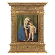 Giovanni Bellini came from a dynasty of Venetian painters – his father Jacopo and his brother Gentile were both famous, as was his brother-in-law, Andrea Mantegna. He was one of the first Italian artists to make extensive use of oil paints, which gradually replaced the traditional medium of tempera (colour pigments mixed with egg). The rich colours of oil-based paints enabled artists to produce brilliant yet subtly-modelled works of art which appeared more natural that the rather stilted works, enriched with gold, of the previous era. Venetian artists like Bellini and his pupils were particularly noted for their imaginative use of colour.